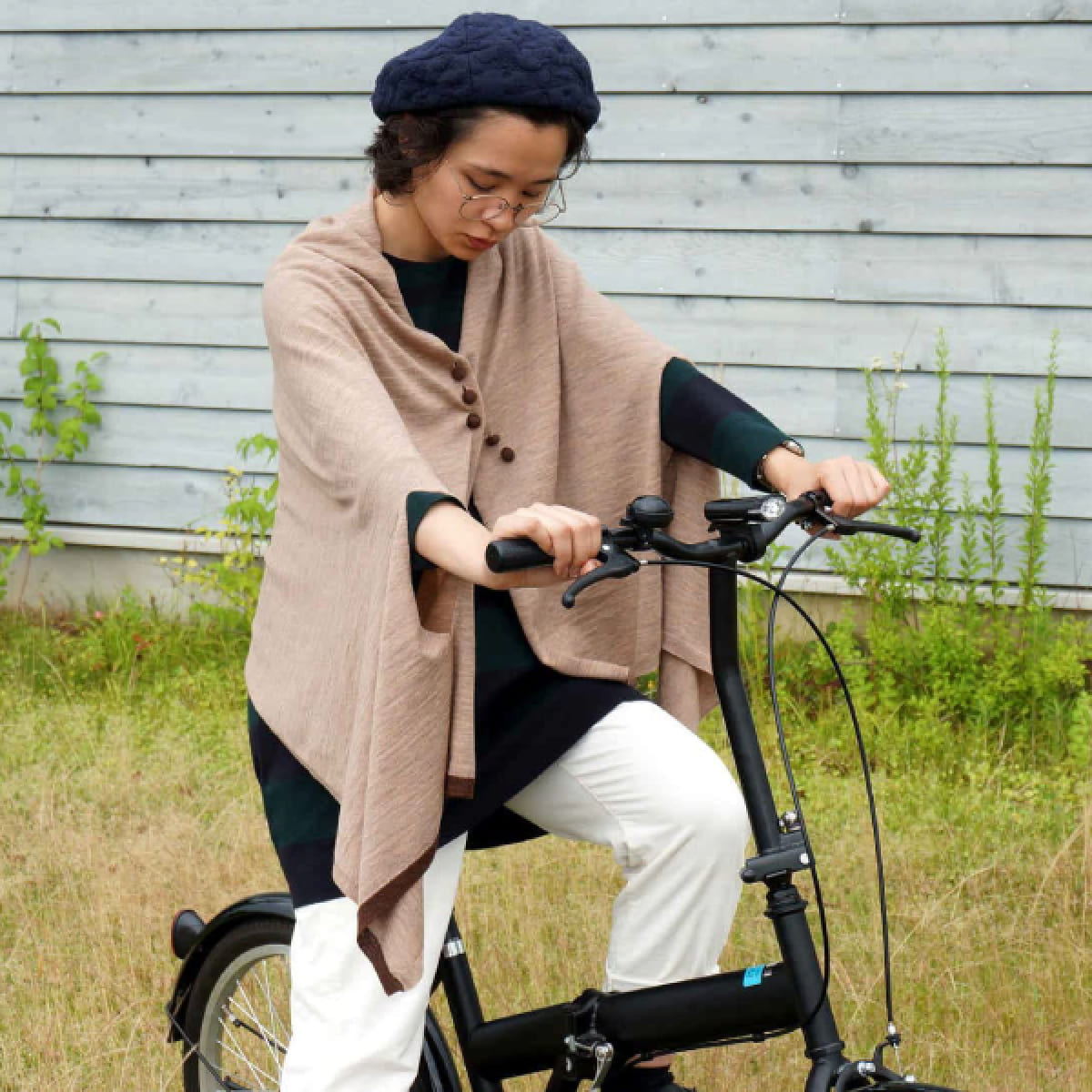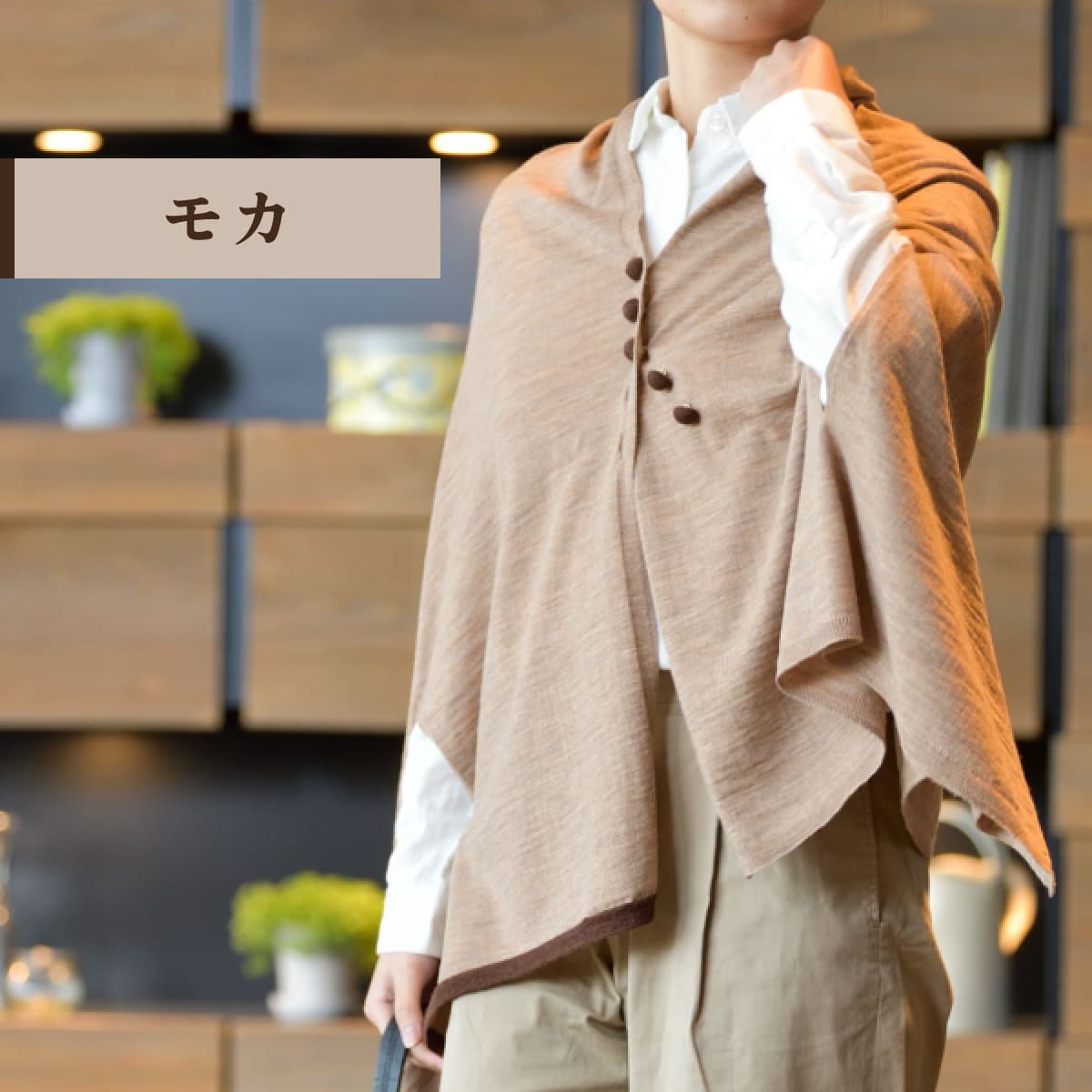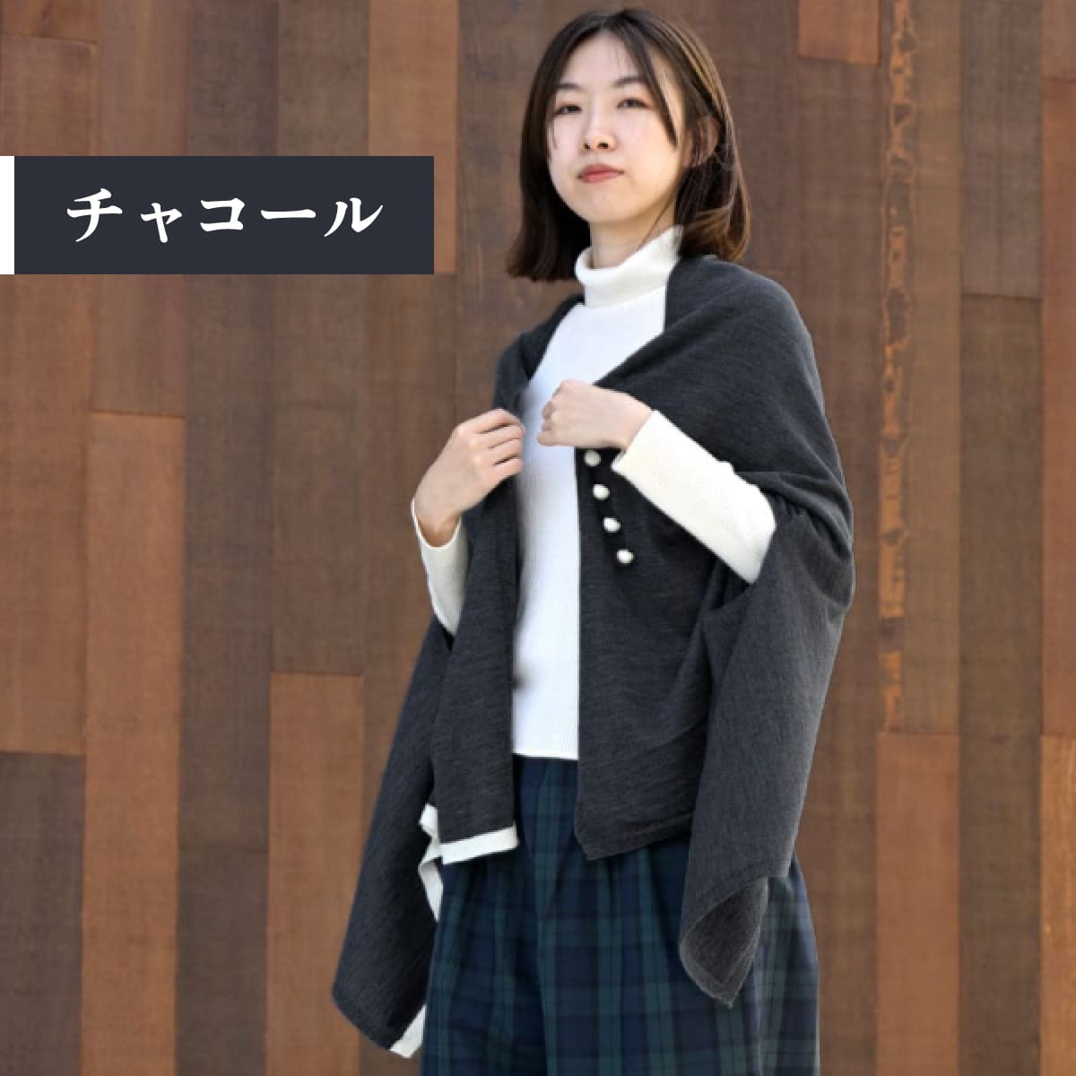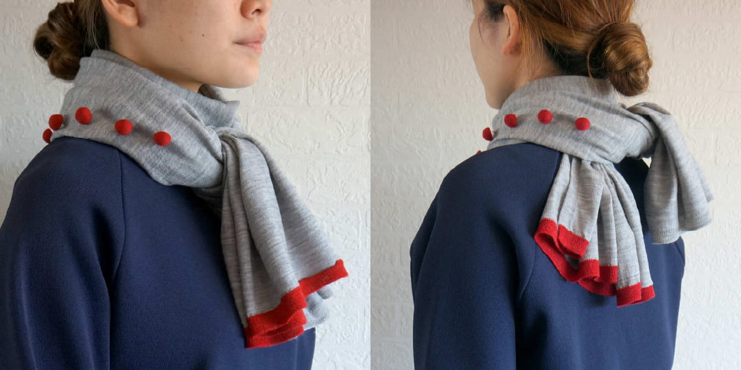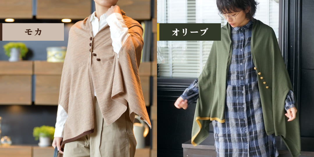 羽織っても首に巻いても、右端に入っているアクセントカラーがちらりと見え、大人のセンスを感じさせます。