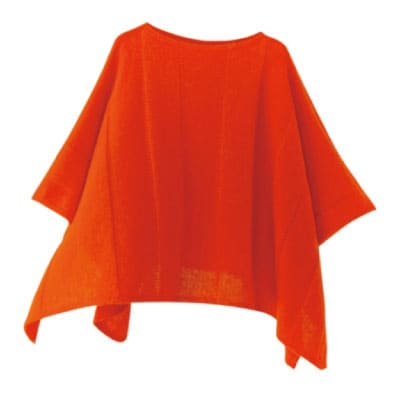 正方形のニット地の中央から横方向にスリットを入れたかぶるタイプのポンチョで、着る向きによってポートネックとVネックの切り替えができます。