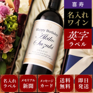 エレガントなデザインのラベルに筆記体でお名前が入る名入れワイン。パールのように輝くラベルにお名前や感謝のメッセージを自由にお入れします。ワインは赤白の2種類。さらに喜寿を迎える方が生まれた77年前のメ…